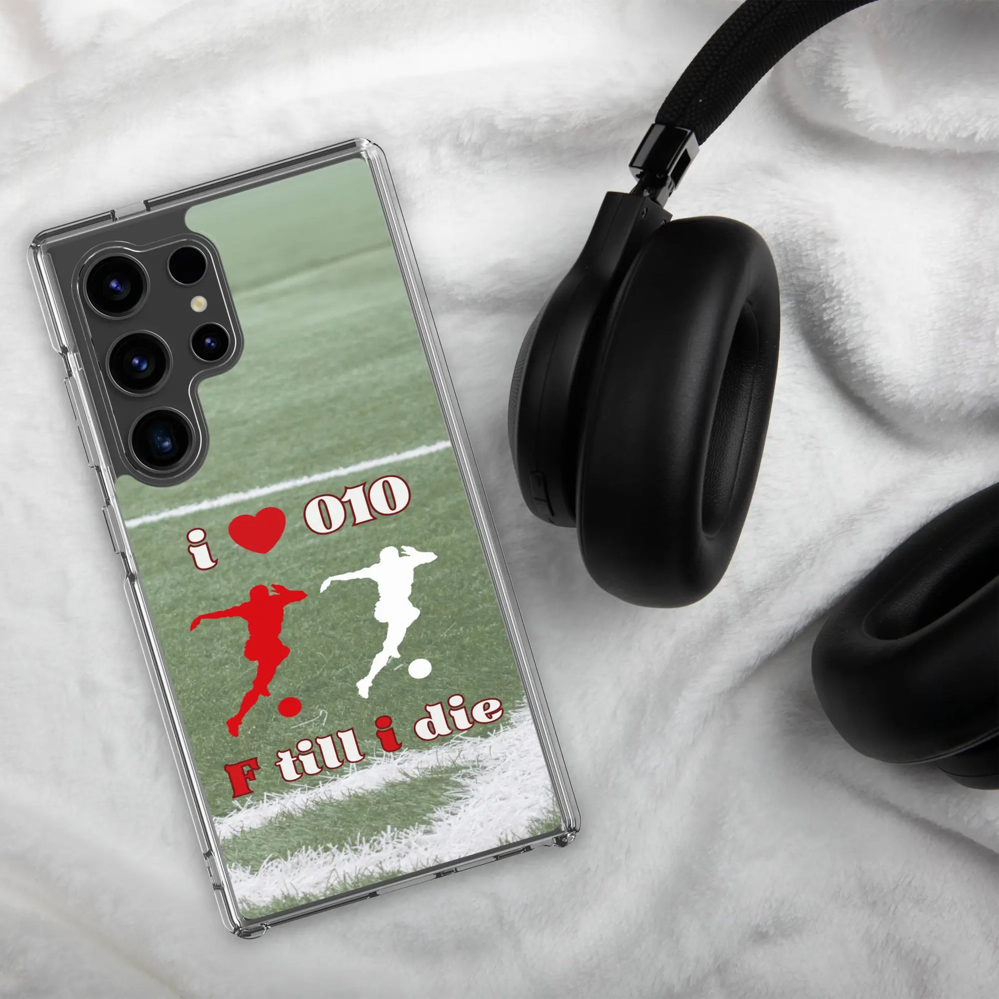 Dit stijlvolle telefoonhoesje is versierd met het iconische "I Love 010, F Till I Die"-ontwerp. Perfect om je clubtrots te tonen, waar je ook bent.