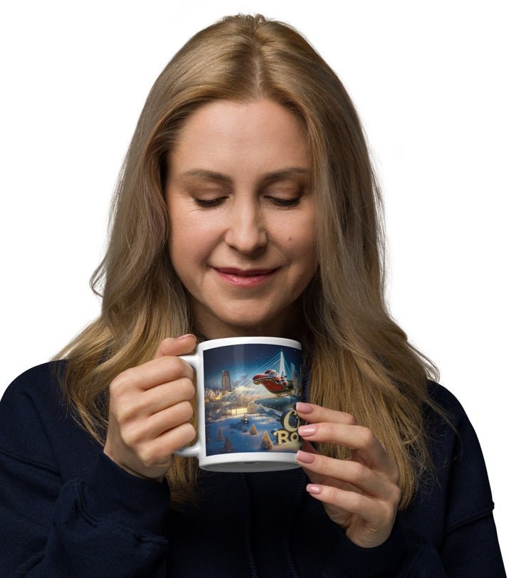 Ontdek de magie van kerst in Rotterdam met onze betoverende mokkenserie. De afbeelding op elke mok toont de Kerstman die zijn slee door een sterrenverlichte hemel boven de iconische skyline van Rotterdam stuurt. Met een warme, uitnodigende gloed perfect voor de feestdagen, brengt deze mok de vreugde van de kerstperiode naar je keukentafel.