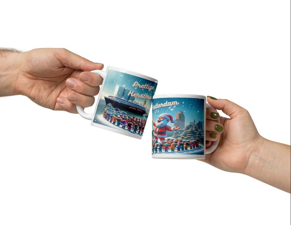 PS. Een vriendelijke herinnering: de charmante scène op deze mok is een product van onze fantasie en creativiteit. Terwijl het de feestelijke sfeer van Rotterdam vastlegt, is de illustratie een artistieke interpretatie en niet een letterlijke weergave van de werkelijkheid. Geniet van de magie en de verbeelding die het met zich meebrengt tijdens de feestdagen!