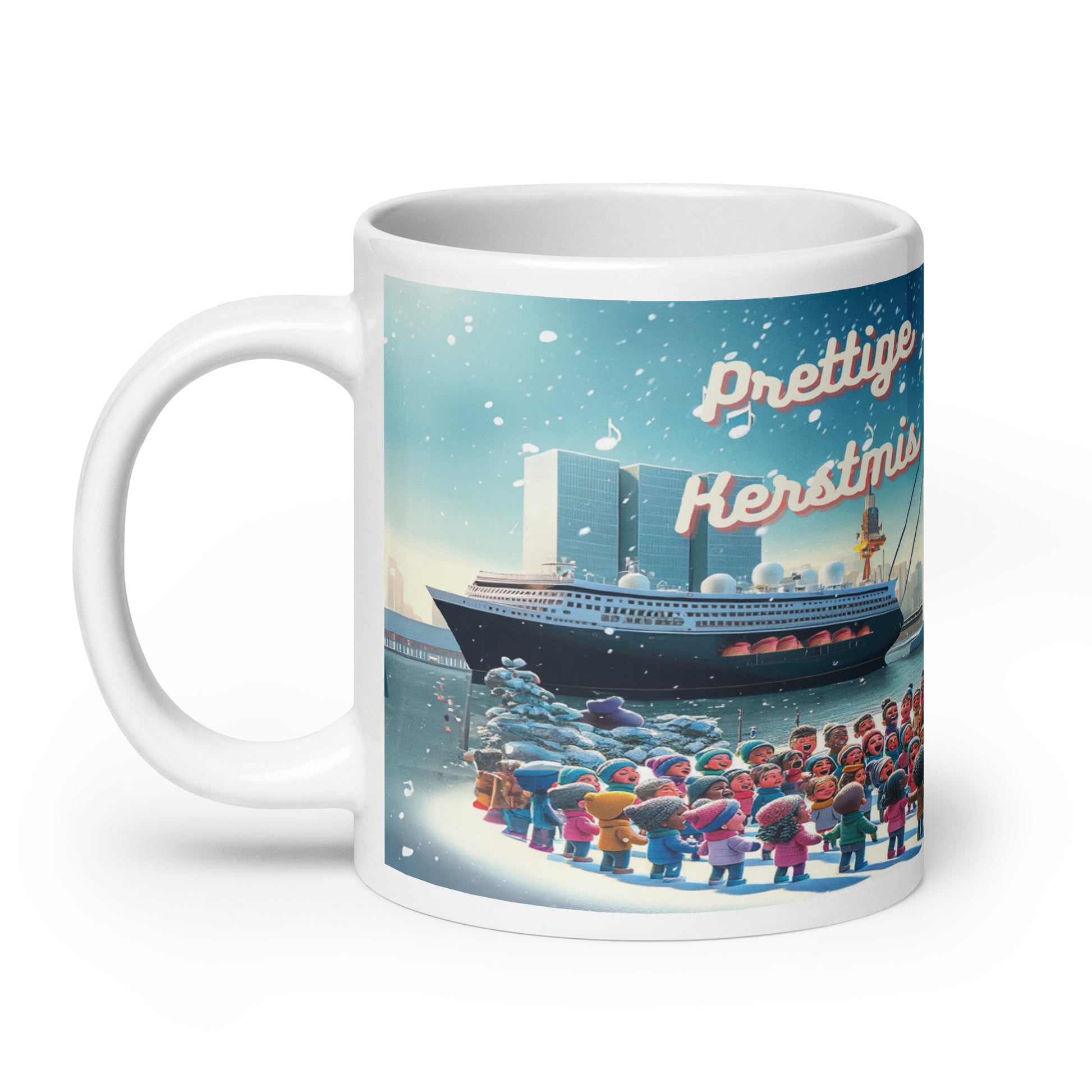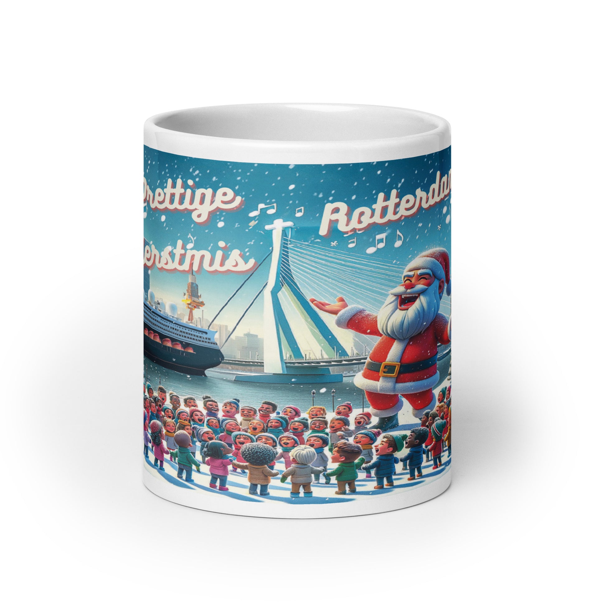 Laat je hart verwarmen door de gezellige tonen van onze "Rotterdamse Kerstvreugde" mok.